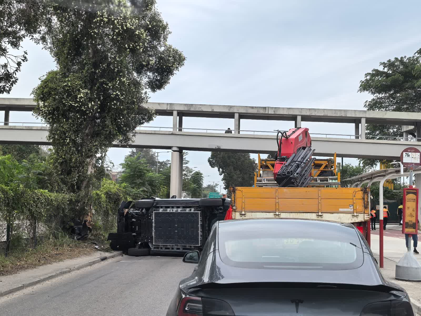 香港文匯報訊(記者 蕭景源)今日(19日)中午約12時,一輛白色車身的私家車在青山公路洲頭段近河上鄉路失事,整車向右翻側打橫路中,期間司機及乘客兩人受傷一度被困車內,事後獲救清醒,其中一人由救護車送北區醫院治理。警方正調查意外原因。
