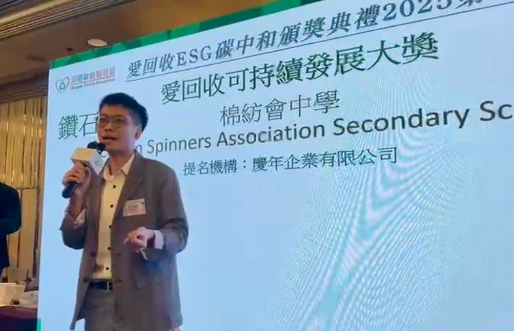棉紡會中學學生事務組主任黎志偉指,環保校服是該校其中一種環保教育,「校內還有廚餘回收等活動,期望我們教育界可將ESG環保理念更生活化。」