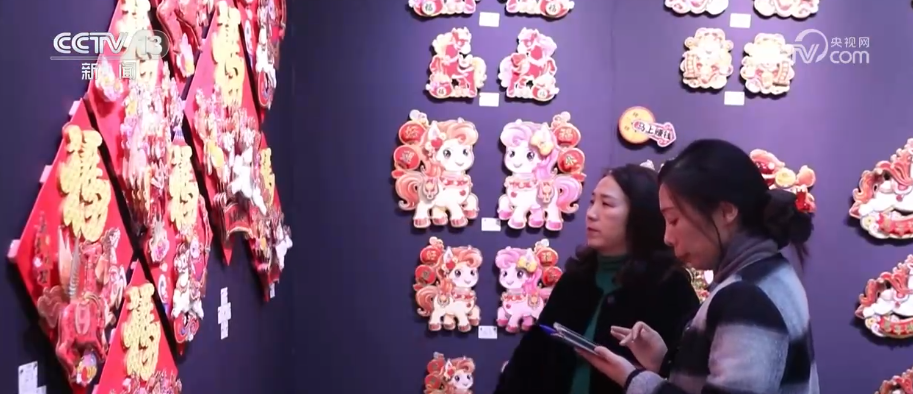 不只是传统年货在推陈出新,近两年,“年味跨界”还成了新潮流。在一家以中国红为主色调的饰品店里,各类“马”上系列发夹、发箍等产品,受到采购商关注。