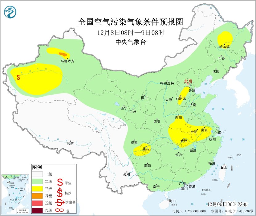 未来一周,新疆天山北坡城市群大气扩散条件较差,有轻至中度霾。此外,6日至7日,新疆南疆盆地、内蒙古中西部等地的部分地区有扬沙或浮尘天气。