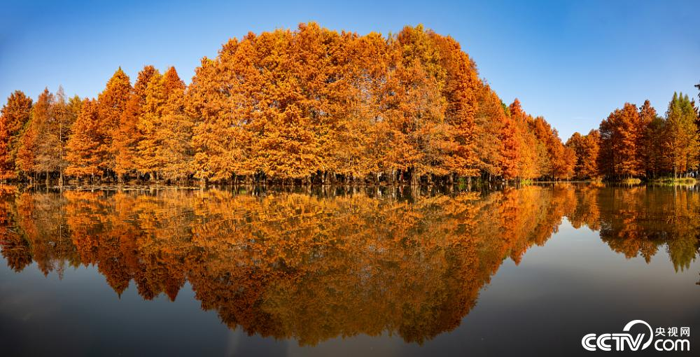 江苏南京,明孝陵燕雀湖水杉秋色。