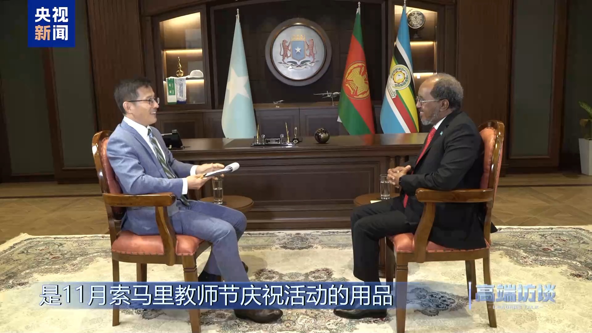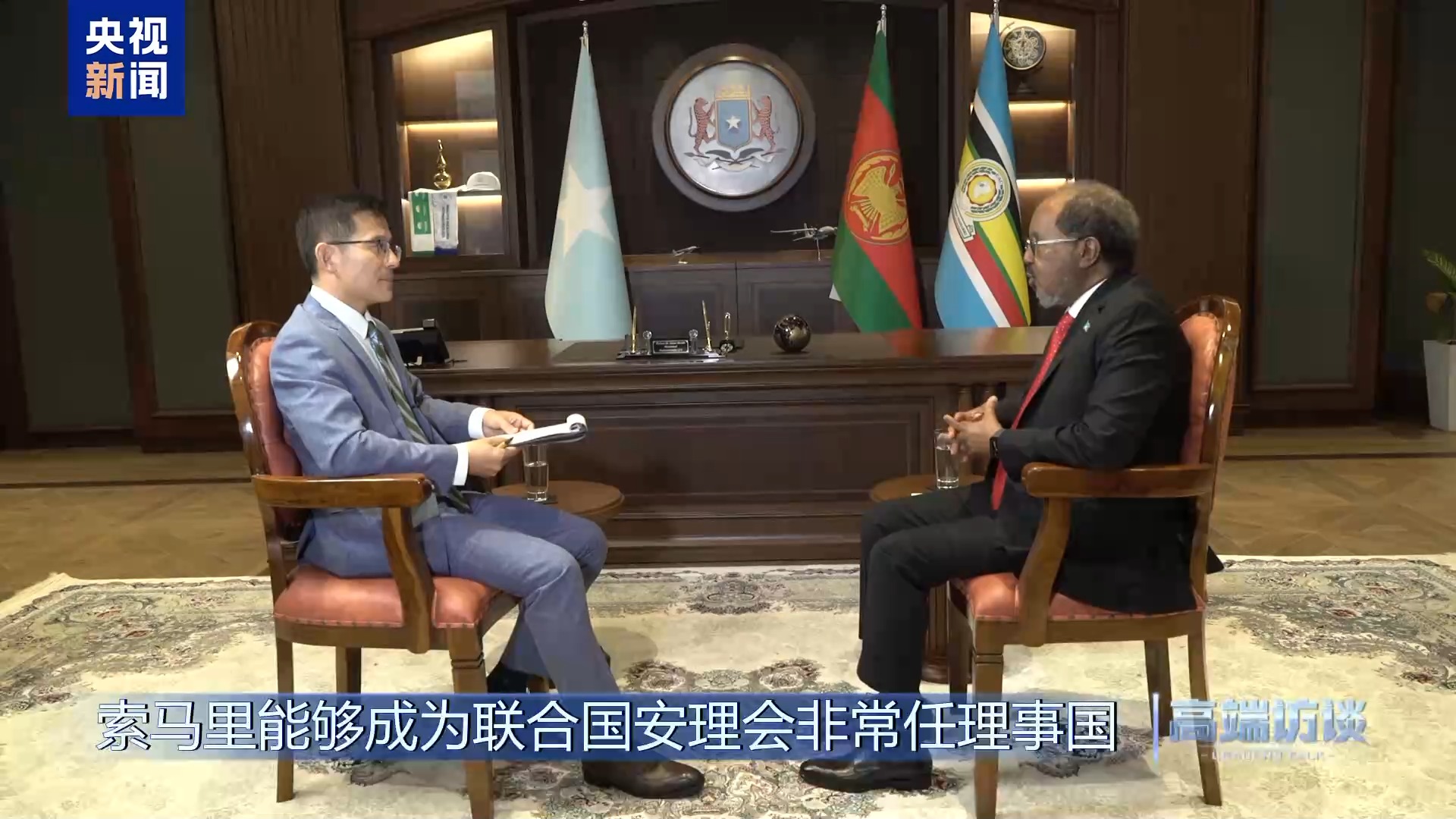 索马里总统马哈茂德接受《高端访谈》专访。经历战火纷飞、局势动荡,索马里正致力于国家重建。