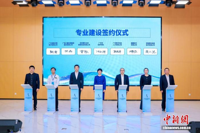 专业建设签约仪式。程景伟 摄广州市技师学院与广州海格天乘技术有限公司、广电计量检测集团股份有限公司、深圳慧科未来教育科技有限公司等多家企业现场签约,将围绕人工智能、低空经济、具身机器人、信息安全、信创等领域开展专业建设,将学校人才培养与企业项目经验深度融合,共育复合型产业人才。