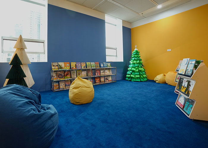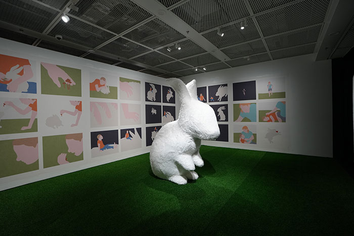 同时,展览还打造了艺术家作品延伸的区域,观众可以在其中放松、玩耍、拥抱那些真实可触的画面元素。展厅的最后,由上海书城和美术馆共同打造了“慢漫书屋”,精选儿童绘本与漫画图书供观众自由翻阅,让阅读与观展在同一空间里自然流动。