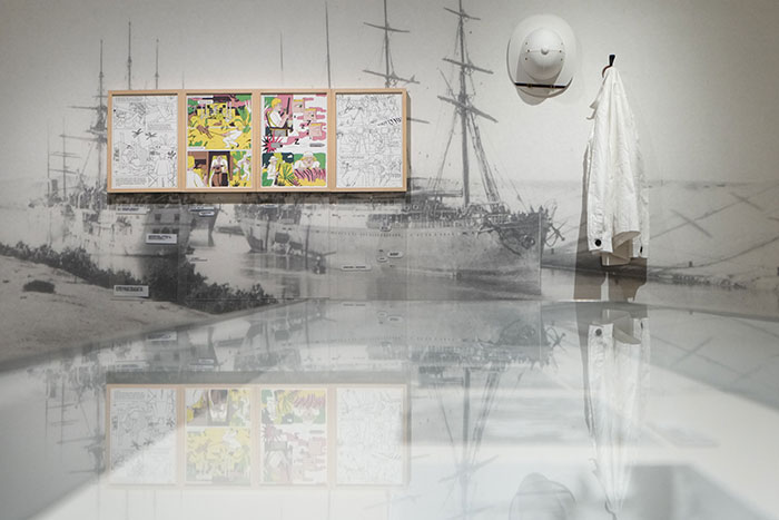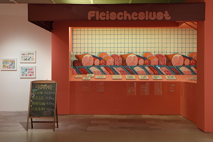 “身份”单元展示艺术家们如何以漫画语言与多媒体装置探索身份的流动性、母职经验、文化记忆与社会角色。马蒂娜·瓦尔特的《阿尔贝蒂娜的梦幻商店》以温暖而富寓意的故事探讨“他者愿望”与“自我实现”的平衡,以及自我认同等更深层的主题;萨拉·富雷在驻地期间创作的特定场域墙画,将旅行经验中的文化细节转化为鲜明视觉;诺艾米·法蒂奥围绕身份这一主题展开,构建了一场关于自我发现与社会期许的视觉对话;马丁·厄什凭借细致的画风与作为肉铺老板的个人经验,在视觉吸引力与思辨性之间寻找平衡,探讨劳动、伦理与身体文化;桑德罗·拉姆塞耶的《香缇之地》聚焦现代身份困境,揭示在资本化社会中构建“真实自我”的难题。这一单元中的作品在美术馆空间中形成多重叙事交错的场景,使身份成为不断生成的开放结构。