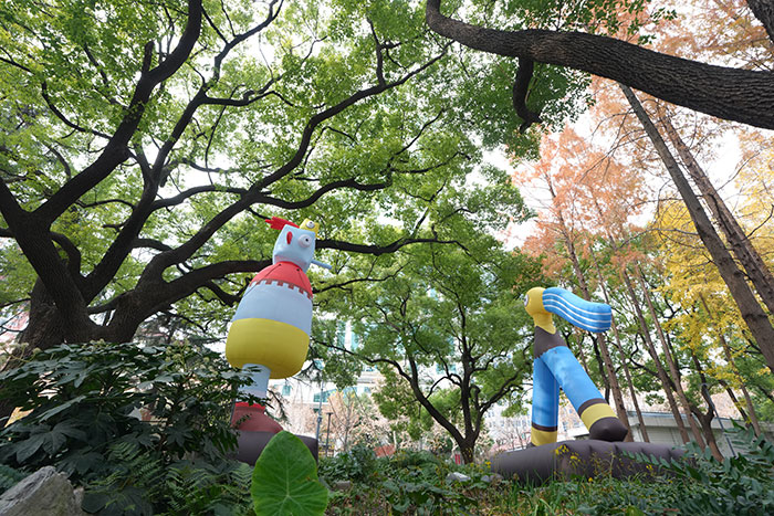 越过展墙,美术馆还在街角“森邻公园”里放置了大型雕塑玩偶,让漫画世界延展到户外,邀请观众在城市、在冬日、在想象之间进行一场真正的“漫游”。