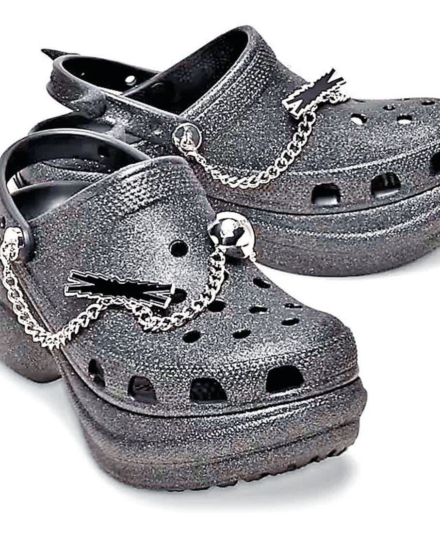 實力女團LE SSERAFIM最近推出首張單曲專輯,還與舒適鞋品牌Crocs合作,推出限定版鞋款Bae Clog,將「無懼」態度重新演繹。以經典Crocs鞋款為藍本,Bae Clog升級加厚中底,營造Oversized輪廓,充滿Y2K風格。選用閃黑漆皮鞋身,後跟鑲嵌金屬飾片,鞋款大膽融入金屬鏈條與鉚釘細節,後跟更以惡魔尖角點綴,並將LE SSERAFIM Logo 以金屬板全新演繹。鞋面配備五顆專屬吊飾,分別代表團體五位成員的個人符號,再串以金屬鏈條,閃耀又帶點叛逆。LE SSERAFIM成員表示,希望從鞋款到「Jibbitz」專屬配飾的每個細節,都能向粉絲們講述她們的故事。