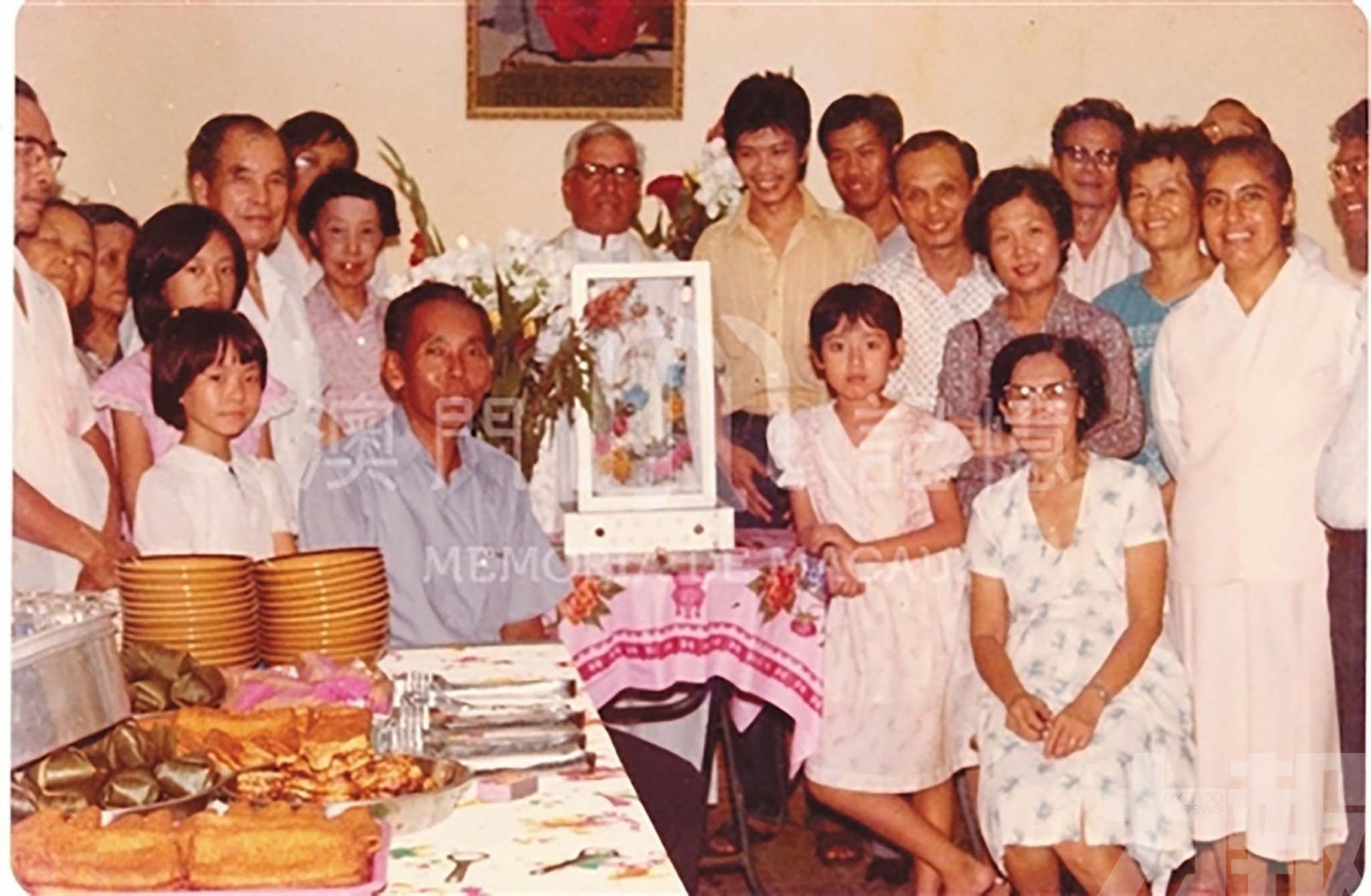 陸毅神父與教友歡渡聖誕節的大合照(澳門耶穌會典藏,澳門文獻信息學會提供,摘自「澳門記憶」文史網)