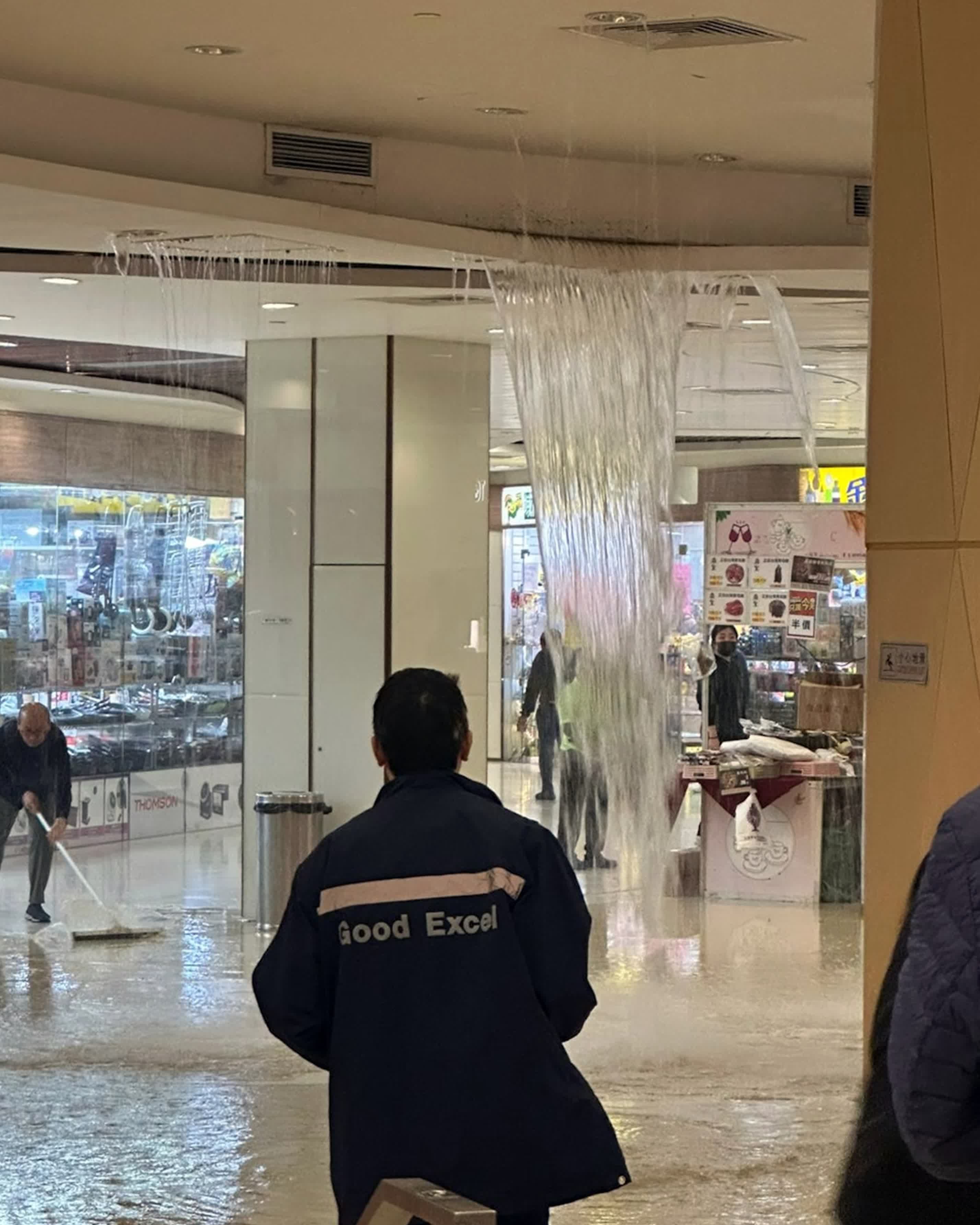 另一間家品店負責人蘇先生形容,事發時聽到「嘭」一聲,隨即見到有大量水如瀑布般從假天花沖下,非常誇張,至少有3塊天花板被沖跌,情況持續一個多小時才有人關水掣;他又指電掣出現跳掣及被水浸,擔心會漏電。另有商戶則表示事出突然,所有人都只能自救,四處找尋工具掃水,十分狼狽。