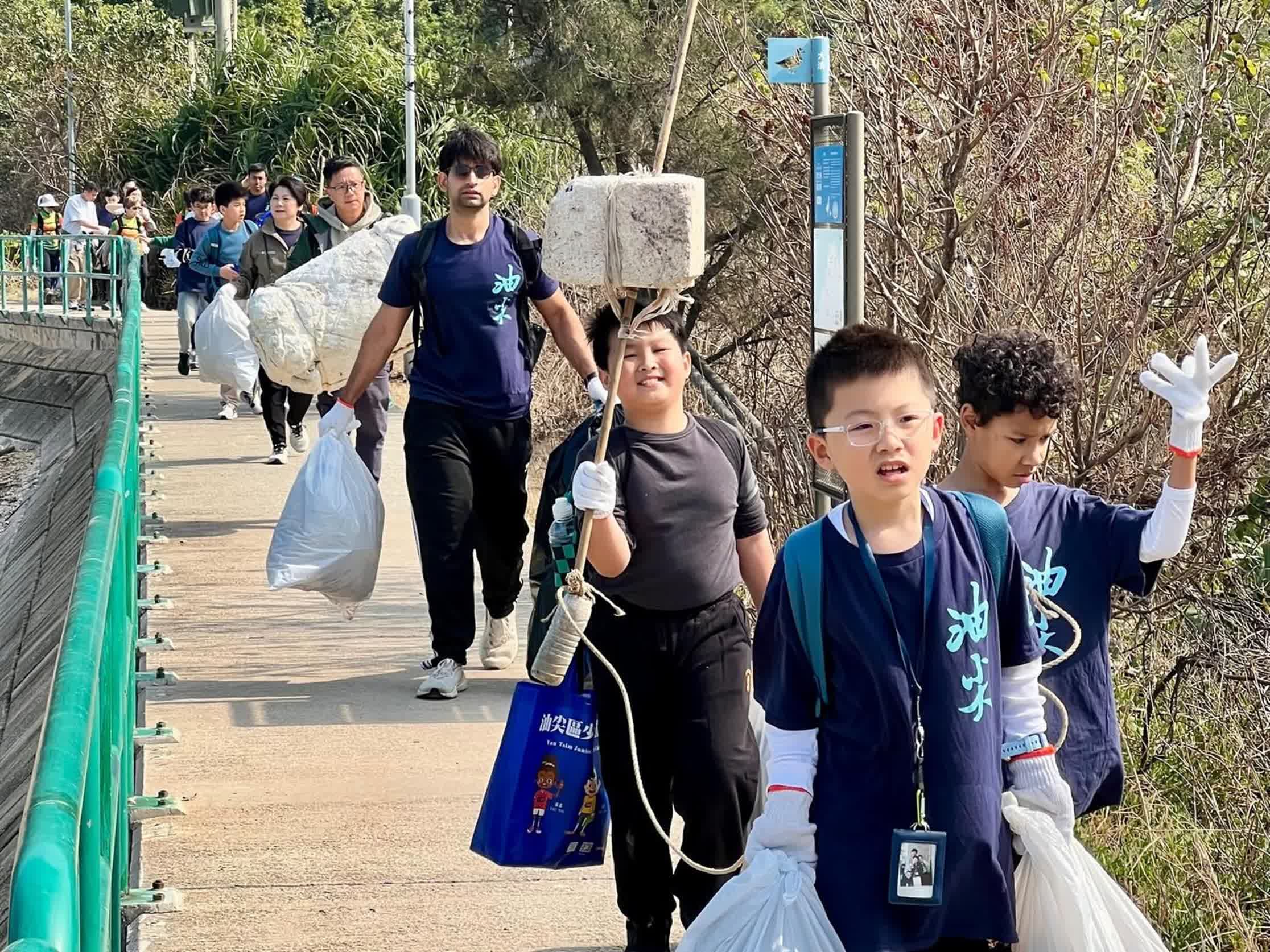 香港文匯報訊(記者 蕭景源)油尖警區「寶石計劃」、 油尖區少年警訊、「新家園協會」及「清徑先鋒」四團體為保育本港美麗海灘,傳遞關愛環境、共建美好家園的正能量,一行逾70人今日(28日)早上前往大澳寶珠潭灘進行清潔海灘行動。期間,各人分在多組,手持垃圾夾、環保袋,沿沙灘細心清理膠樽、泡沫、廢網等海洋垃圾,最終清理約210公斤垃圾。