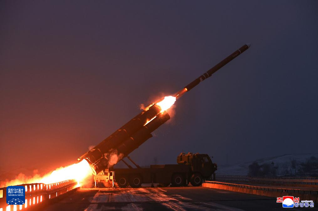 这张朝中社提供的照片显示的是远程战略巡航导弹发射现场画面。新华社/朝中社