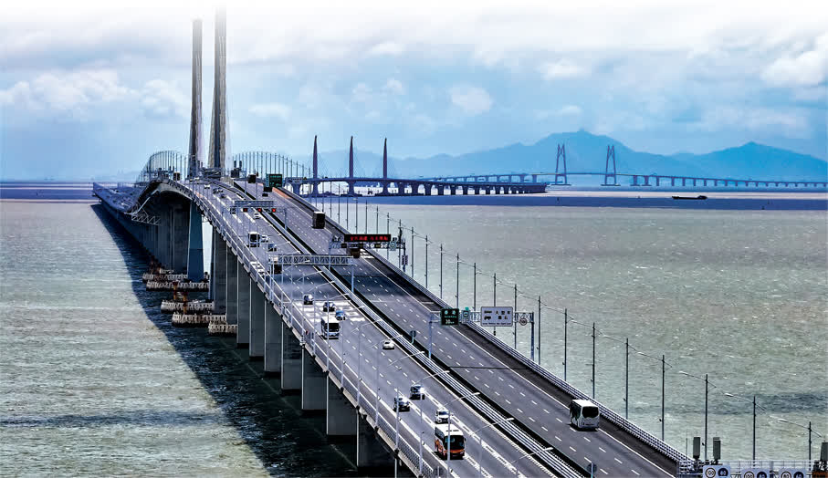 「粵車南下」12月23日起開放合資格粵車進入市區。圖為車輛經港珠澳大橋出行。 資料圖片