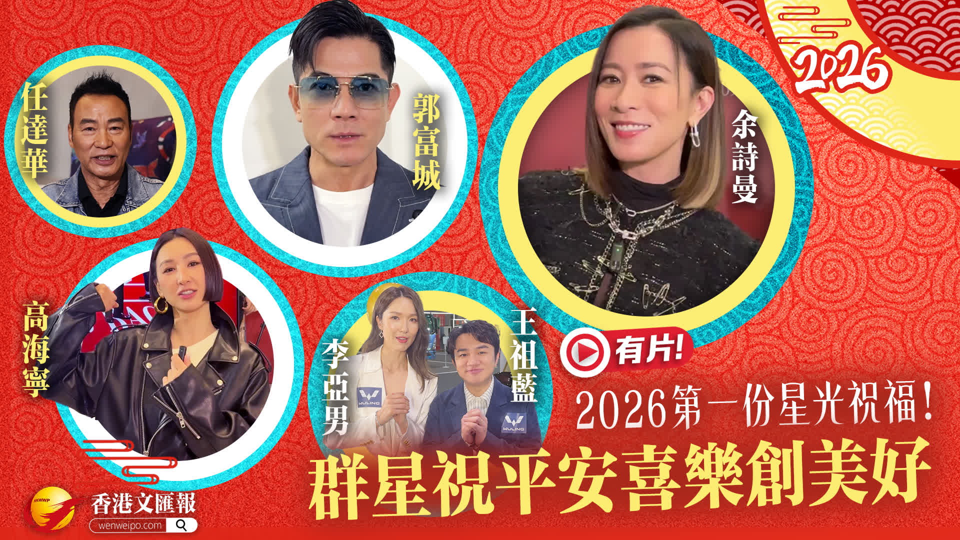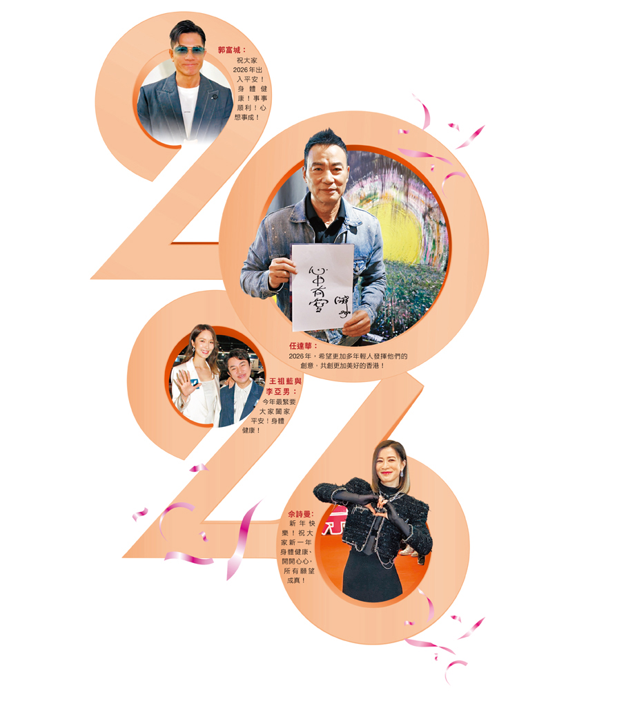 (香港文匯報娛樂組)2026年的新年伊始,30位香港藝人紛紛透過香港文匯報送上誠摯的祝福與願望,帶來滿滿的正能量!他們的心聲既有對個人與家庭的期盼,也包含對社會與世界的美好憧憬。任達華特別揮筆寫上「心中有愛」,寄望年輕人能發揮創意,共建更美好的香港;郭富城、佘詩曼、王祖藍與李亞男等則祝福大家身體健康、事事順利;MC張天賦特別強調「身心」健康的重要。藝人如邵美琪、張曦雯、周嘉洛、周勵淇等更提到世界和平,展現對全球安寧的渴望。部分藝人則將心願寄託於家庭與子女的成長,如陳山聰、蕭正楠等,流露出溫暖的親情。這些祝福凝聚了健康、平安、快樂與和諧的共同願望,象徵着大家對新一年幸福生活的期待,也為2026年揭開充滿希望的序幕!