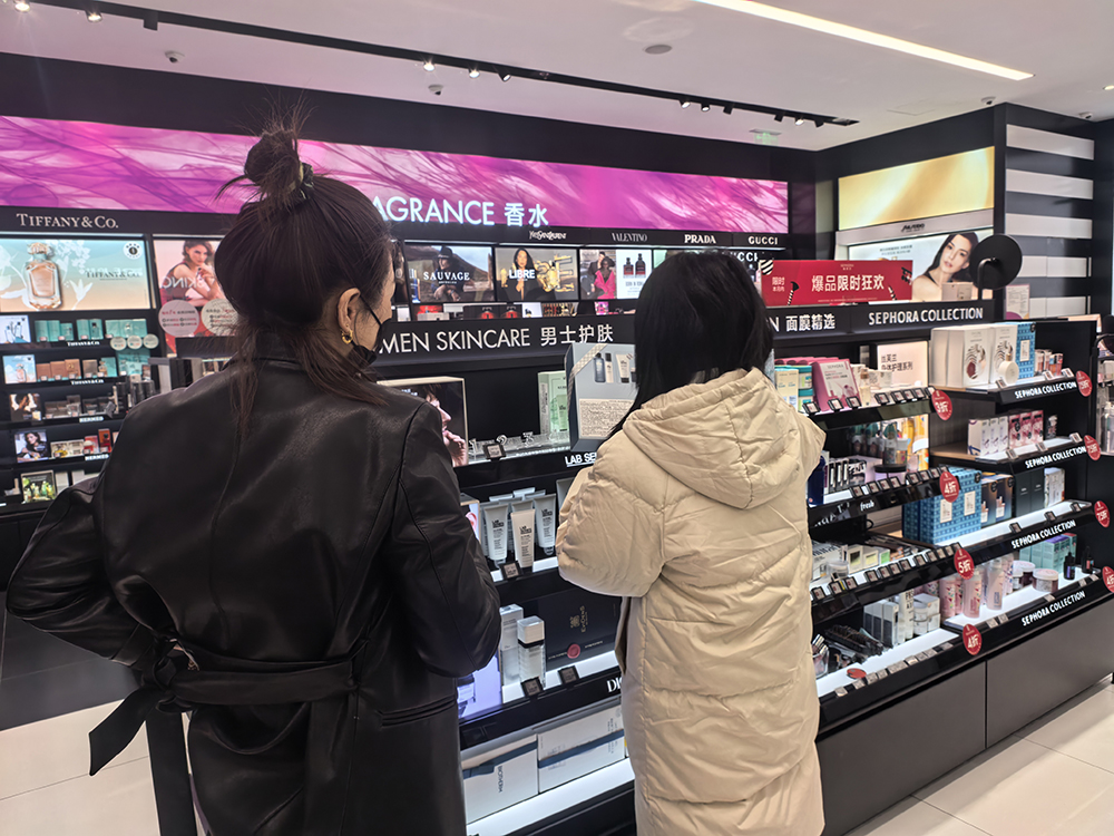 2025年12月31日,一名消费者在北京某商场咨询男士护肤品。 杨莹莹摄