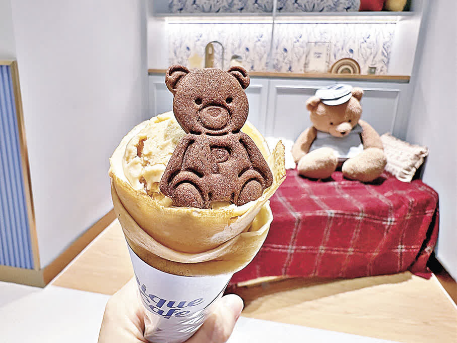 這間新開的甜品店以「治癒系美食」為主題,供應賣相超適合打卡的正宗法式可麗餅等暖心甜點。店舖入口處以超得意超慵懶的熊仔裝置吸引客人,為了出片,慳妹決定下血本試一試。最平的奶油砂糖可麗餅都要42元,招牌Gelato與熊仔餅當然不能少,一共72元。熱辣辣的可麗餅與冰冰涼的雪糕球其實不是很搭配,因為雪糕球會很快融化,因而不會有太多時間拍照打卡,不過兩者單獨食起來都很美味。用餐區仲有一隻超大毛絨熊公仔可以打卡,記得拍完照先走。
