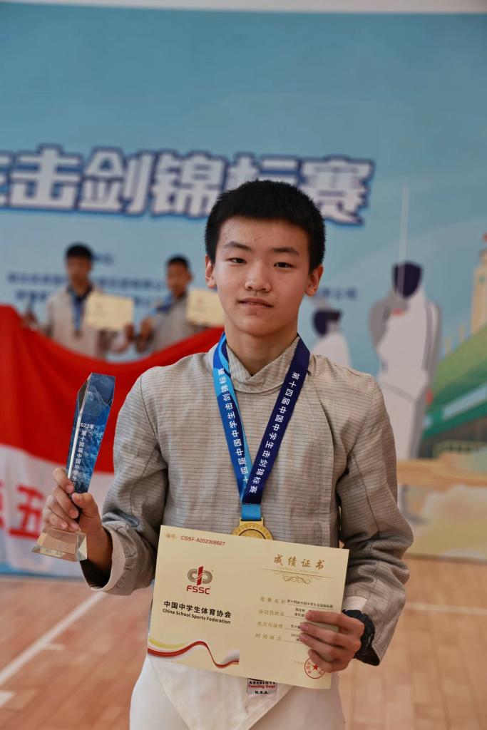 高一学生柳景瀚五年前开始练习击剑
