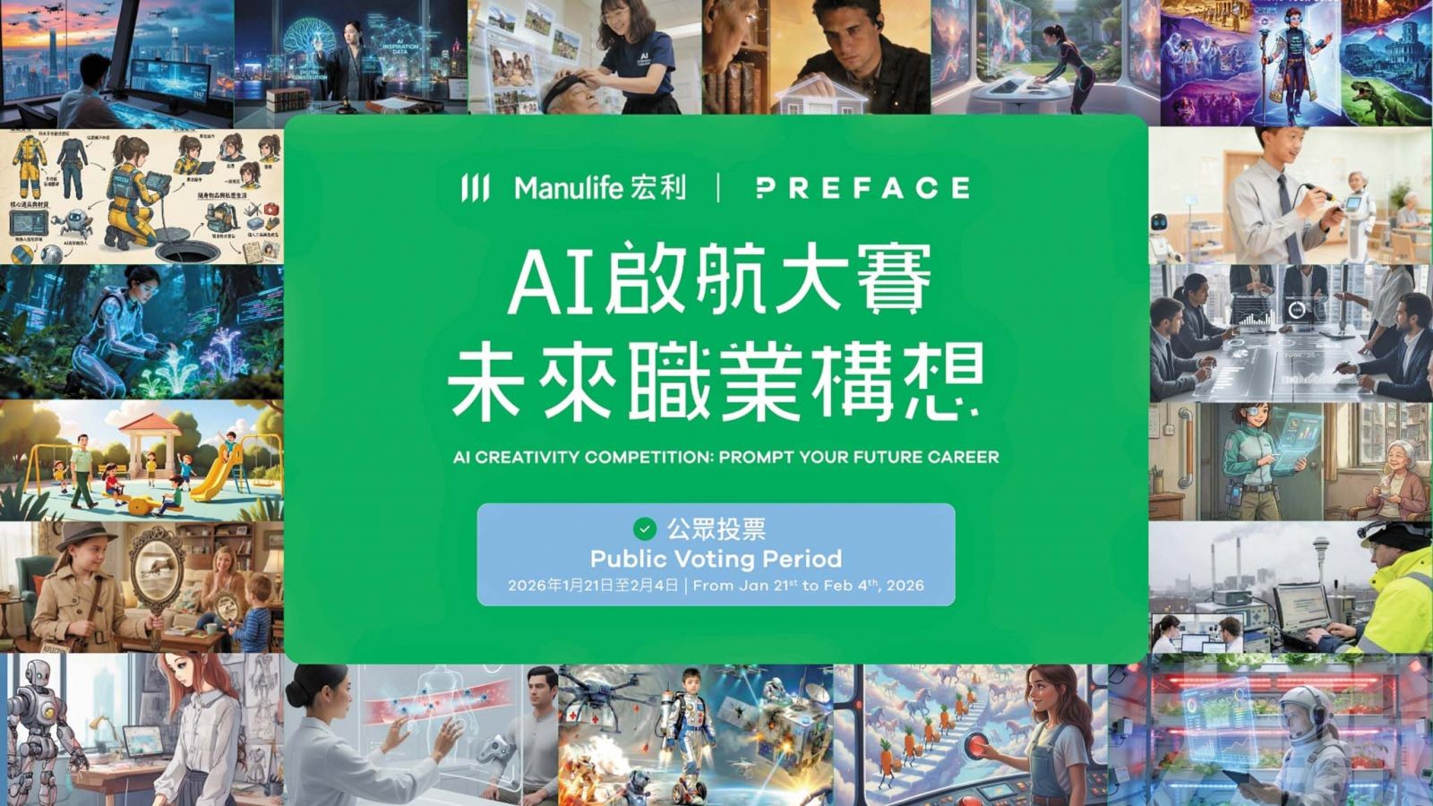 公眾投票現已正式展開,並開放至 2026 年 2 月 4 日。市民可於指定平台投選最具啟發性的AI未來職業構想。