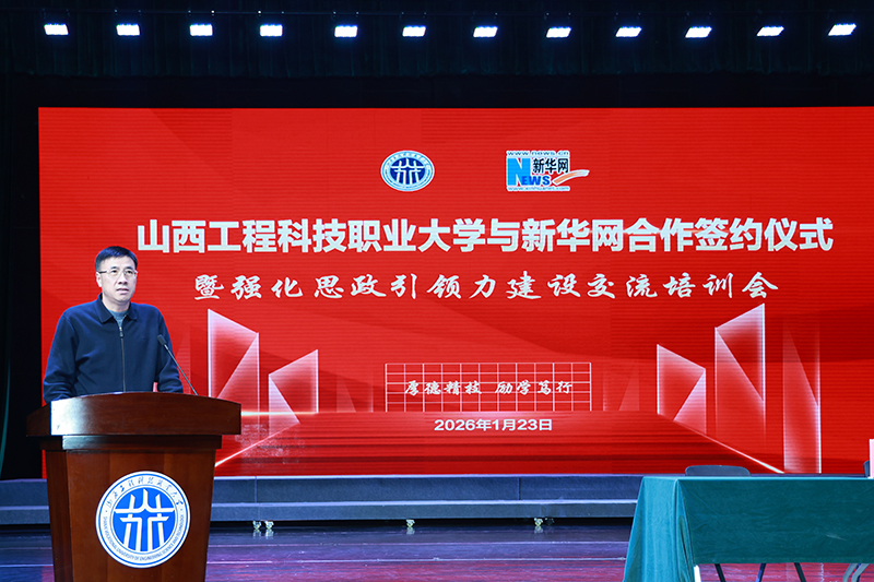 秦华伟在致辞中表示,校媒携手共建“大思政”协同育人中心,是双方优势互补、共谋发展的战略选择,不仅是学校深化思想政治教育改革的重大突破,更是我们回应时代需求、深化育人改革的主动担当。山西工程科技职业大学将以此次签约为契机,紧紧围绕推进中国式现代化和教育强国建设的新要求,与新华网紧密协作,努力将协同育人中心建设成为集理论研究、实践创新、资源共享于一体的高水平思政育人平台,共同探索职业教育领域“大思政”建设的新范式,打造具有山西特色、职教特征、工科大气质的思政教育新名片。
