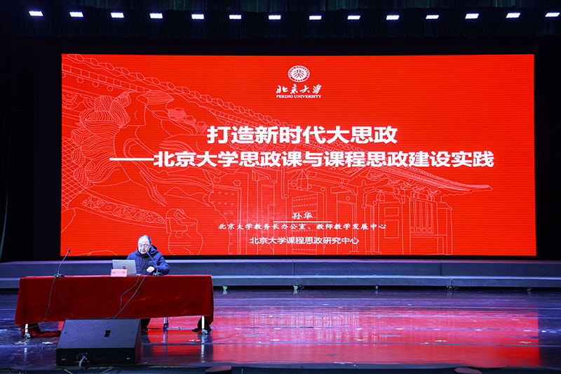 仪式结束后,北京大学教师教学发展中心主任孙华教授作专题授课。他以“打造新时代大思政——北京大学思政课与课程思政建设实践”为主题现场授课,详细介绍了教育部相关政策、学校和院系的实施方案、课程思政示范课程的教学实践,探讨如何在课程思政中发挥教和学的两个主体作用,在专业教学中总结、提升和凝练课程思政的经验等内容,为大家注入生动鲜活的思政教学科研前沿理念。来自全国各地的500余位教师参会,聆听了精彩分享。