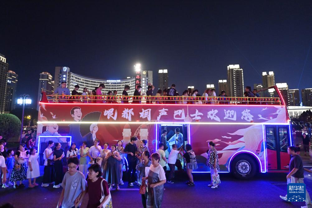 游人排队准备登上“相声巴士”(2025年8月13日摄)。新华社记者李然摄