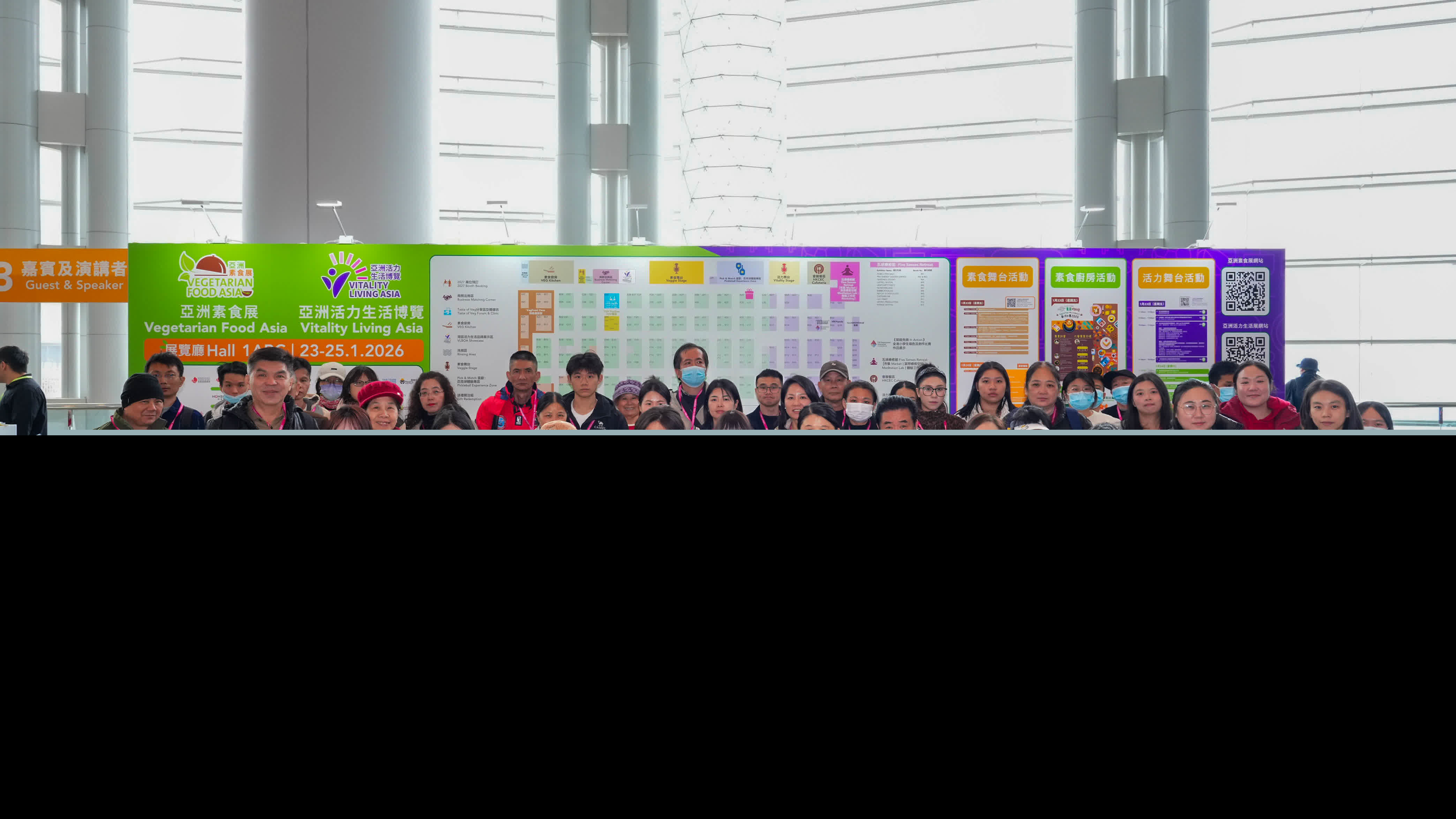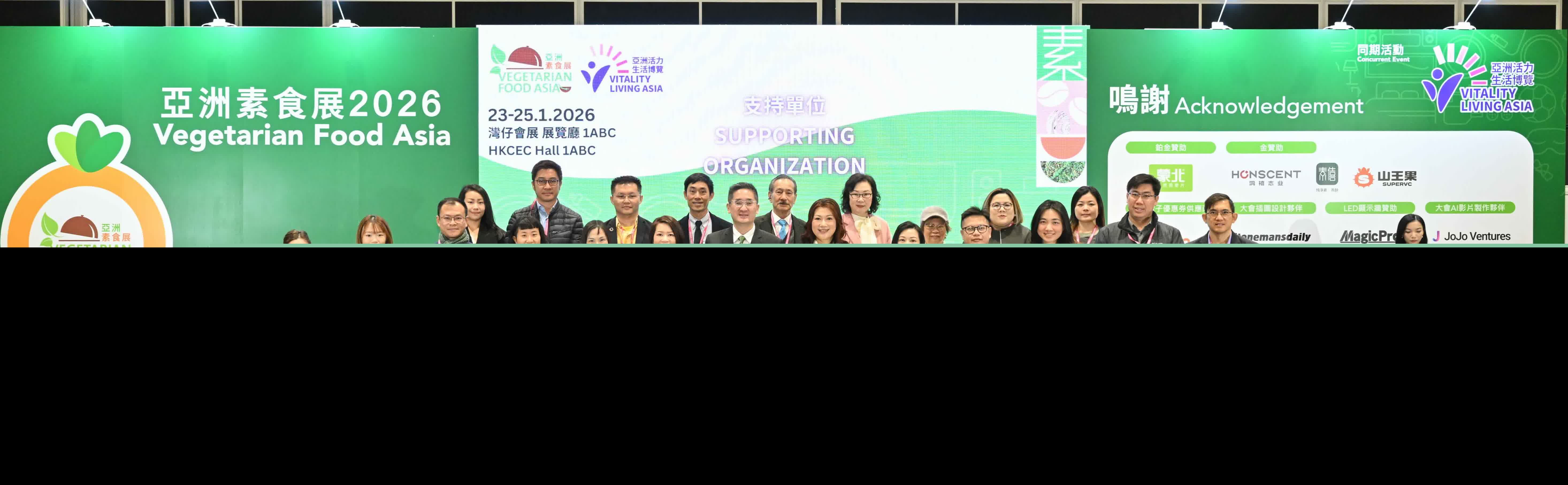 第十二屆「亞洲素食展」聯同首屆「亞洲活力生活博覽2026」今日(1月23日)於灣仔會展Hall 1ABC正式揭幕,首日已吸引大批市民入場參觀,場內多個展區人流暢旺,特色餐飲、素食產品試食、新興運動體驗及身心靈療癒活動均受到市民關注,為一連三日的全方位健康生活盛會打響頭炮,觀眾及業界人士對新產品、新技術及創新飲食方案表現出高度興趣。同時,論壇及商貿配對活動氣氛熱烈,企業代表與買家進行深入交流,現場洽談積極活躍,反映出亞洲健康、植物基及活力生活產業的強大商業潛力。