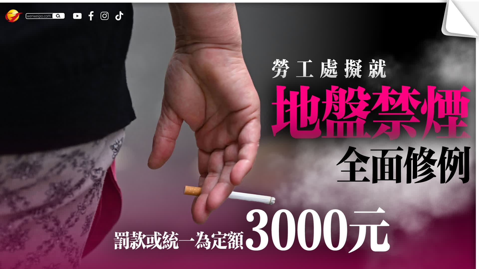 勞工處正計劃全面修訂法例,禁止全港所有建築地盤吸煙。勞工處處長許澤森今日(5日)在一個電台節目表示,針對違規吸煙工人的罰則,擬由原本最高可被法庭判罰15萬元,改為定額罰款3000元。