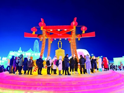 “冰雪辽宁舰”点亮哈尔滨夜游
