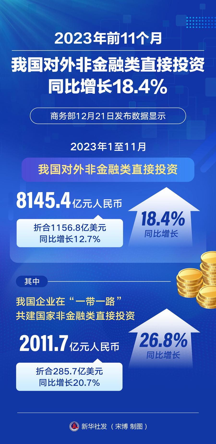 前11个月我国对外非金融类直接投资同比增长18.4%